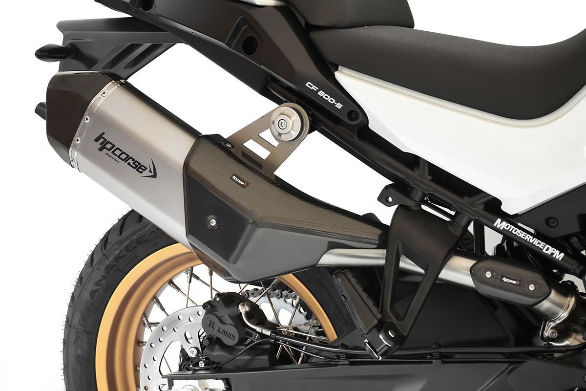 SPS CARBON SHORT a differenza del 4-TRACK R SHORT è dotato di un finale in carbonio che va ad avvolgere il beccuccio e a proseguire le linee del corpo silenziatore. SPS CARBON SHORT garantisce tutta l’affidabilità di cui un motociclista ha bisogno e prestazioni superiori rispetto allo scarico originale generando un picco di potenza in particolare ai bassi e ai medi regimi, abbinato a una coppia straordinaria. Capace di reinventare la parte posteriore della 800, SPS Carbon Short è disponibile in due materiali diversi: titanio, acciaio inox ceramizzato nero ed è dotato di para-calore in carbonio posizionato fra la parte iniziale della camicia e il raccordo. Omologato Euro 5.