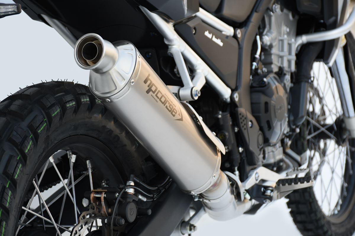SP-1 350 EVOLUZIONE si installa con il COLLETTORE ORIGINALE e con il COLLETTORE 2 IN 1 HP CORSE abbinato al RACCORDO BASSO HP CORSE, in questo caso decadono le omologazioni sul TERMINALE e l’uso del veicolo non sarà più consentito su strade aperte al traffico (Only for Race Parts).