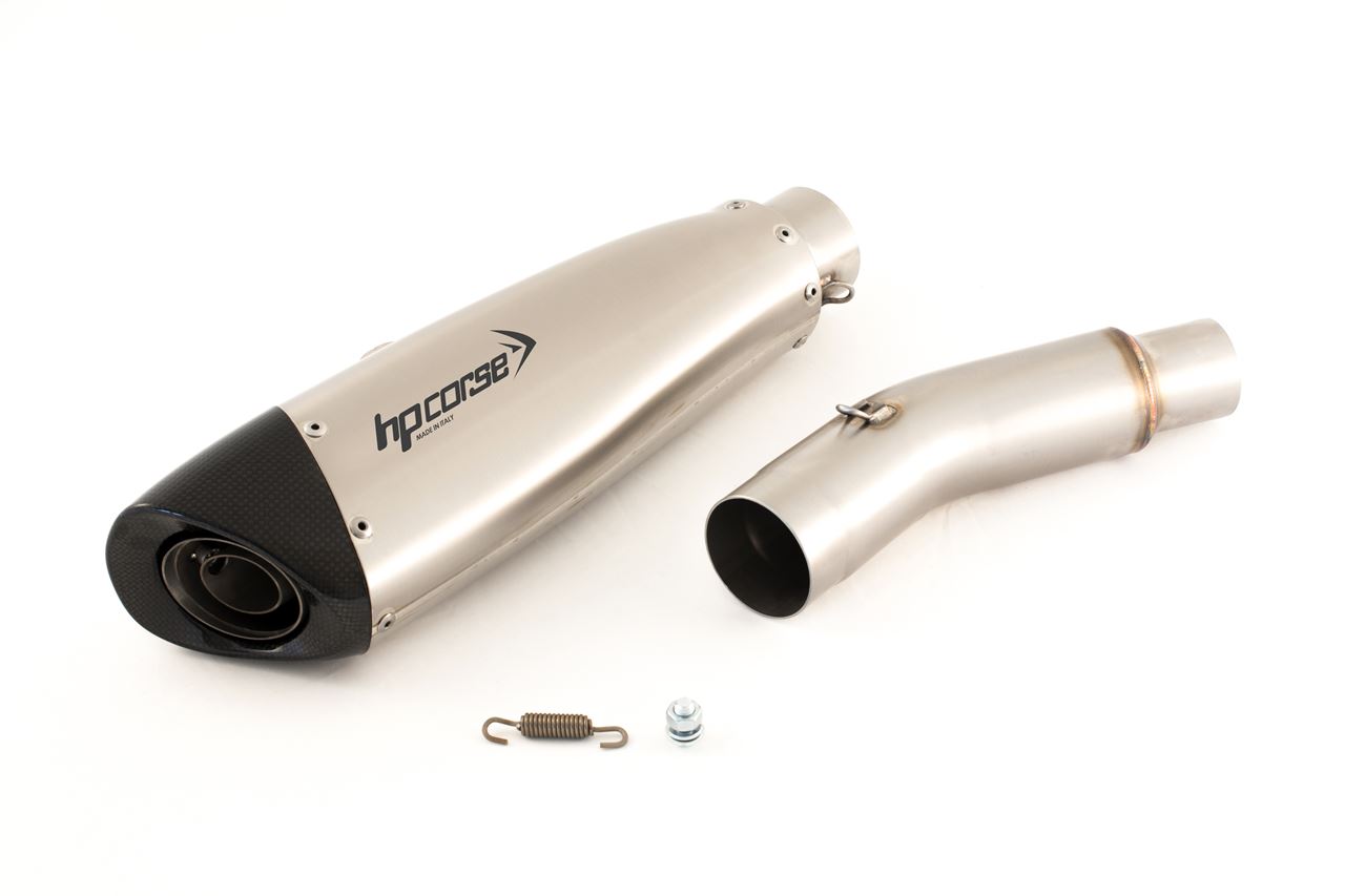 Terminale Evoxtreme Satinato singolo basso (linea da 310mm con fondello in carbonio) + raccordo per collettori originali KAWASAKI Z750/R 07-14 (Terminale omologato secondo la direttiva 97/24/CE-2006/120/CE cap.9)