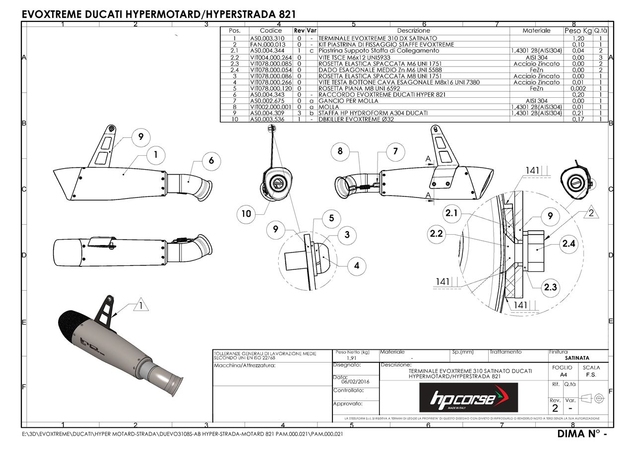 TERMINALE EVOXTREME 310 SATIN PASSAGGIO BASSO DUCATI HYPERMOTARD 821 2013-2015