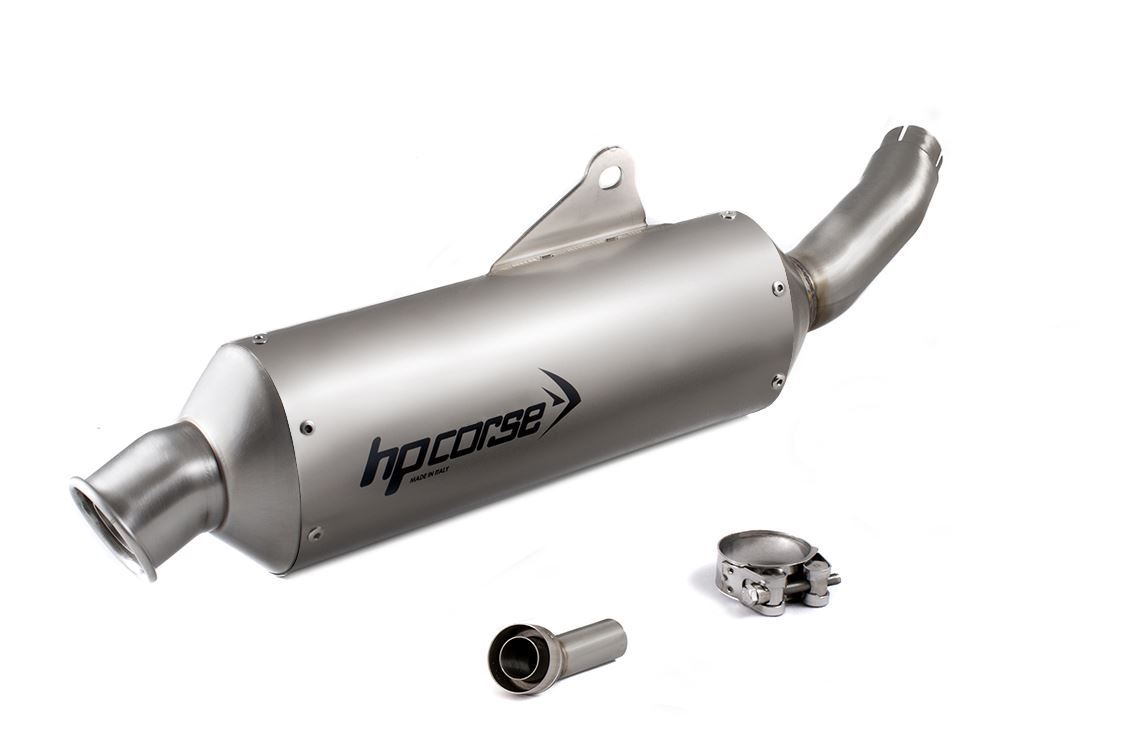 La semplicità che diventa arte, l’arte dell’essenziale, lo scarico torna alla sua sintesi originale per liberarsi da qualsiasi forma che non sia deputata al suo unico motivo di esistere perché nella semplicità si nasconde la vera essenza delle cose. Ideati da HP CORSE nel cuore della Motor Valley e ispirati ai grandi Rally africani, i nuovi scarichi SP-1 guardano al futuro ma leggendo e reinterpretando il passato. Scarichi leggerissimi di forma ovale dotati di un beccuccio rotondo ed essenziale senza saldature nell'angolo di piega -unico nel suo genere-, capaci di integrarsi perfettamente nel lay-out stilistico delle più recenti Adventure e Off-Road. Forti, instancabili e robusti, gli scarichi SP-1 hanno la camicia in titanio con finitura naturale e in acciaio inox (satinato oppure ceramizzato nero), l’attacco Slip-On in questo caso saldato a TIG direttamente al terminale. Hanno le staffe di supporto rinforzate e saldate anch'esse manualmente a TIG e il logo HP CORSE inciso al laser oppure, su richiesta del cliente, lo scarico può essere fornito anche con adesivi da applicare. Testati a lungo prima al banco, poi sui campi gara dai Team che collaborano con noi, gli scarichi SP-1 sono costruiti per resistere agli utilizzi più impegnativi. Il DBK è estraibile.