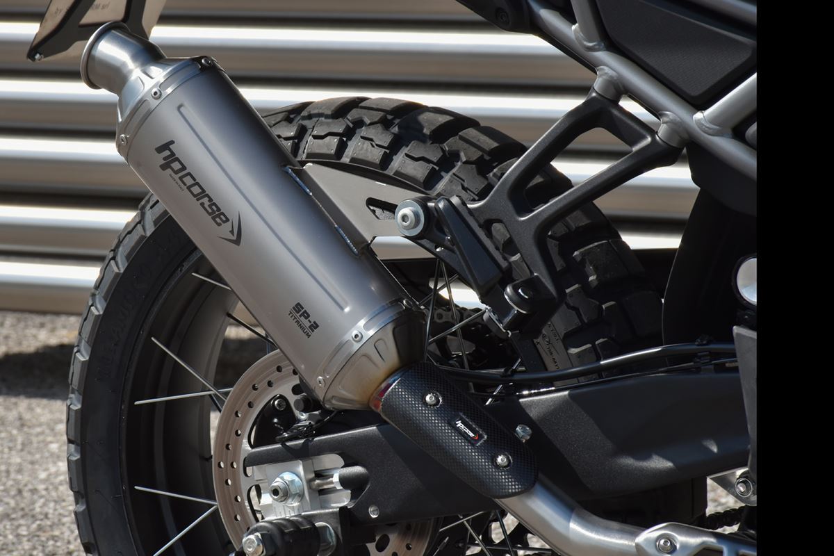 Less is More, la semplicità che diventa arte, l’arte dell’essenziale, lo scarico torna alla sua sintesi originale per liberarsi da qualsiasi forma che non sia deputata al suo unico motivo di esistere perché è nella semplicità che si nasconde la vera essenza delle cose. Ideato da Hp Corse nel cuore della Motor Valley e ispirato ai grandi Rally africani il nuovo scarico SP-2 TITANIUM guarda al futuro reinterpretando il passato. Uno scarico leggerissimo di forma ovale dotato di un beccuccio rotondo ed essenziale, senza saldature nell'angolo di piega, capace di legarsi perfettamente alla parte posteriore della moto. Disponibile nella versione SHORT da 300 mm con raccordo a passaggio basso, dotato di cover in carbonio che protegge il pilota dal calore. Forte, instancabile e robusto, lo scarico SP-2 TITANIUM ha il corpo silenziatore realizzato in titanio 0,8 mm di spessore con nervature laterali. Disponibile omologato Euro 5 Plus , ha la staffe di supporto saldata manualmente a TIG, le boccole di innesto al raccordo ricavate dal pieno e il logo Hp Corse inciso al laser. Testato a lungo prima al banco, poi sui campi gara dai Team che collaborano con noi, SP-2 è realizzato per resistere alle situazioni più impegnative.