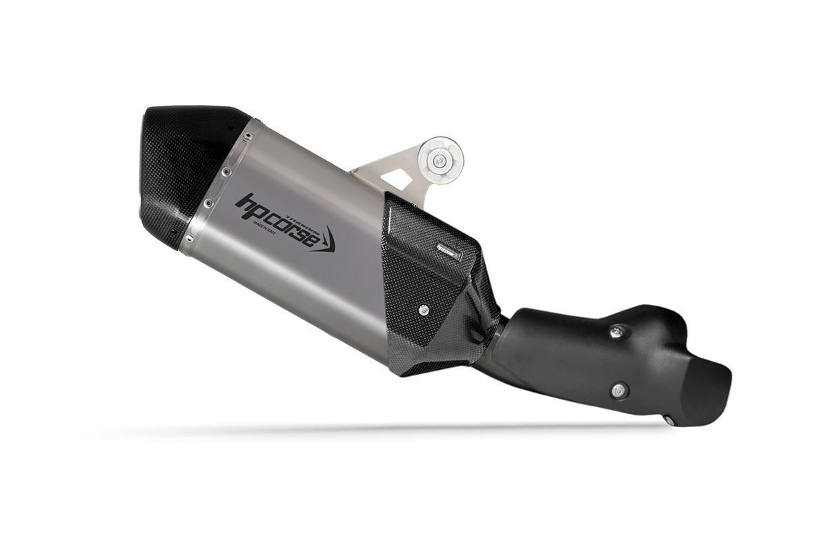 Tre scarichi innovativi dal design unico e inconfondibile, aggressivo, ma allo stesso tempo elegante, caratteristica tipica del lay-out stilistico HP CORSE, impreziositi da una griglia finale che va a rivestire la bocca di uscita. Tre scarichi nuovi, compatti e perfettamente proporzionati, con un corpo marmitta in titanio di soli 270 mm di lunghezza (per lo SPS RALLY e il 4-TRACK RALLY) e un corpo in acciaio di 350 mm per il 4-TRACK S RALLY. Grazie a queste dimensioni contenute e alla particolare conformazione delle camere di espansione interne, il sound, rispetto allo scarico di serie, risulta più profondo e corposo, mentre l’estetica della moto diventa ancor più ricercata e accattivante. SPS RALLY ha il fondello finale in fibra di carbonio, mentre lo scarico 4-TRACK RALLY presenta un beccuccio di uscita idroformato dal profilo ovale. Entrambi hanno una bellissima griglia finale la quale fa intravedere la doppia bocca di uscita per i gas di scarico. Al contrario, lo scarico 4-TRACK S RALLY ha un beccuccio di forma rotonda in pieno stile OFF-ROAD. Tutti gli scarichi sono dotati di cover in Fibra di Carbonio che ne migliora l’aerodinamica e protegge dal calore, sia durante il normale utilizzo della moto, sia in caso di contatto accidentale con il corpo, garantendo un migliore comfort di guida. HP CORSE è 100% Made in Italy e, da sempre, è sinonimo di produzione artigianale di altissima qualità, qualità che si ritrova in tutti i dettagli, nei particolari costruttivi e in qualsiasi finitura, con le saldature e i componenti saldati e spazzolati a mano da personale altamente specializzato.