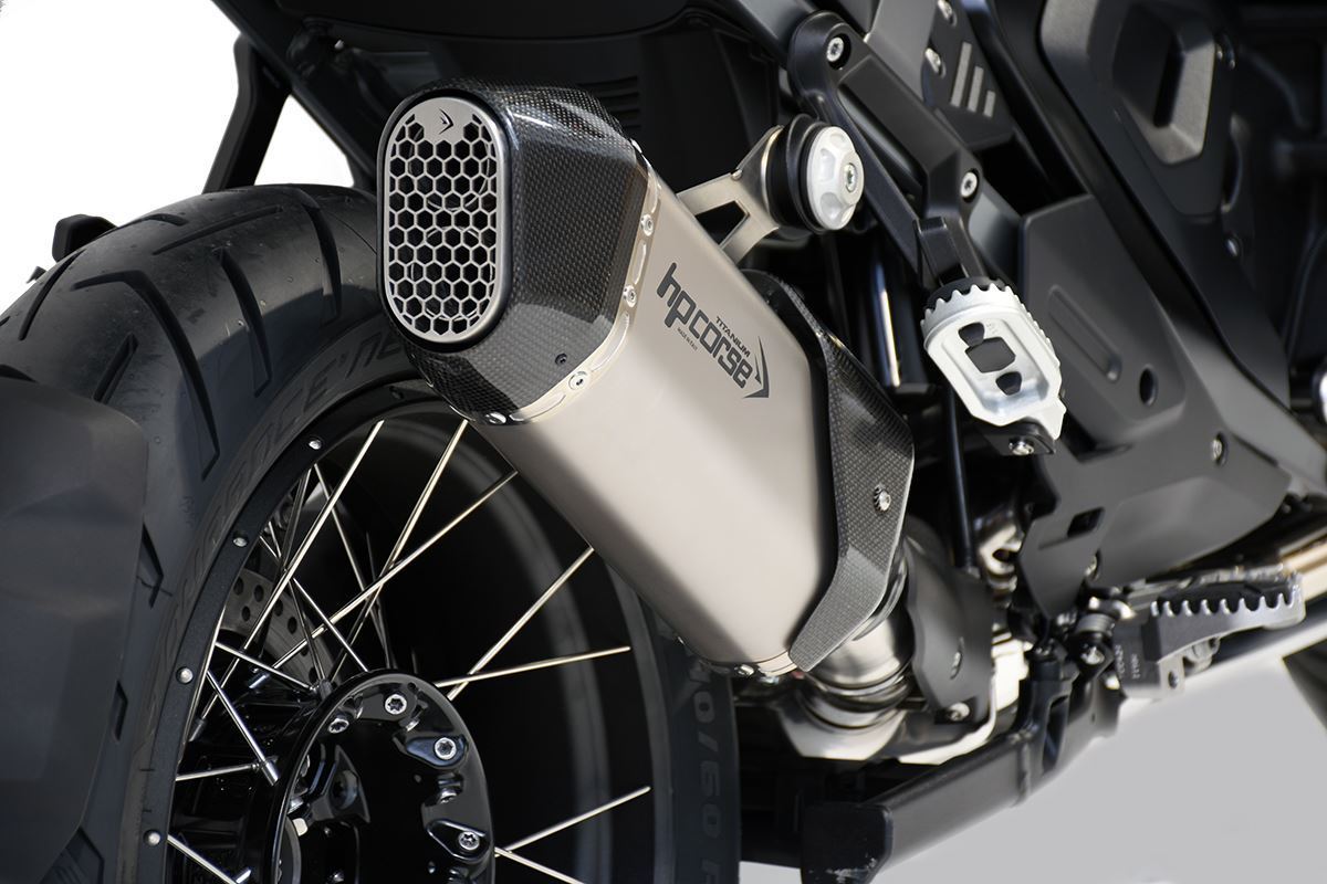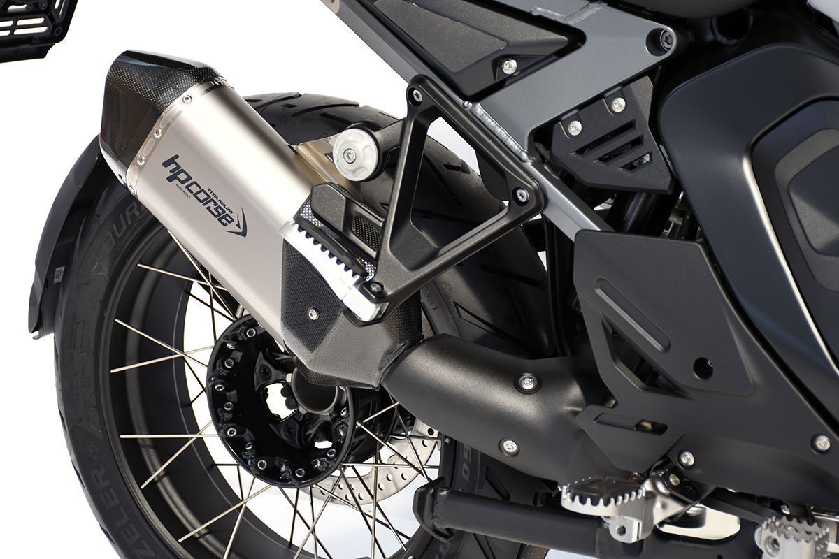 SPS RALLY è uno scarico nuovo, molto proporzionato nelle dimensioni e nei volumi, corto e compatto, perfetto per la BMW R 1300 GS ADVENTURE. Un terminale "OPEN" poichè è omologato EURO 5 PLUS ma senza DBK, nel pieno rispetto delle normative vigenti. Grazie a ciò, abbiamo ottenuto prestazioni elevate in termini di potenza e di coppia ed estratto dal bicilindrico BMW, un soud piacevolmente profondo, molto diverso da quello prodotto dal terminale originale. La camicia del silenziatore è in titanio e in titanio ceramizzato nero con spessore 0.8 mm e ha una lunghezza esclusi i fondelli di 270 mm. Il finale è in fibra di carbonio Made in Italy ed è caratterizzato da una griglia di protezione metallica a nido d'ape in acciaio inox spazzolato. La cover, sempre in carbonio, riprendel il lay-out stilistico del fondello posteriore conferendo al terminale un carattere Rallystico che strizza l'occhio ai grandi viaggi e all'avventura. Il raccordo è in acciaio inox saltato manualmente a TIG. Logo inciso al laser.
