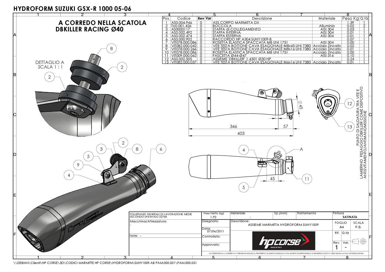 • Additional racing db killer (diam 40mm) included